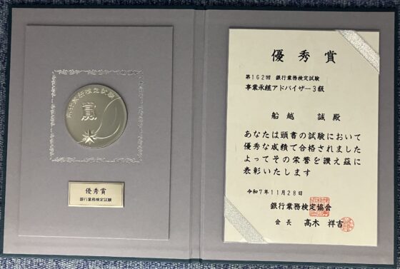 先日、銀行業務検定の「事業承継アドバイザー3級」を受けました!